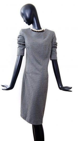 A retro print green tricot dress with long sleeves.